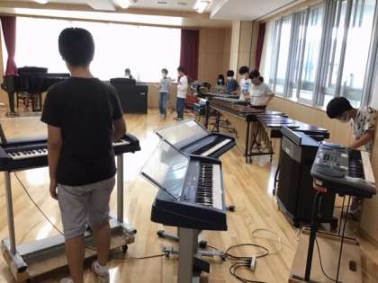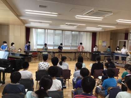 音楽の時間です。合奏発表会の本番です。グループごとの工夫がよく伝わってきます。