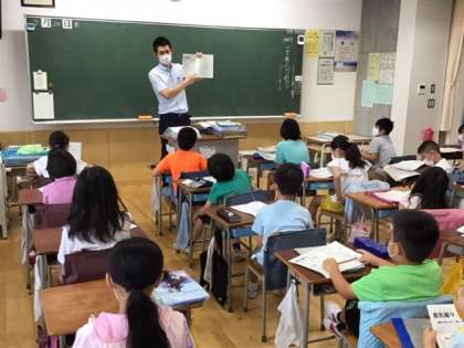 学級活動の時間です。担任の先生から、夏休みの過ごし方についてお話がありました。