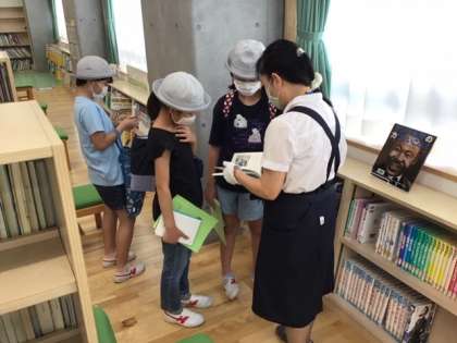 夏休み中の次の図書室開室日は、8月24日と25日です。8時30分から11時まで開室します。本を読んだり借りたりできます。司書の先生からアドバイスももらえますよ。