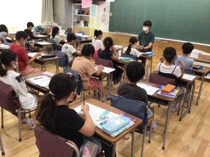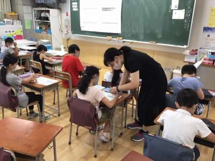 「棒グラフ」や「あまりのあるわり算」の復習をしています。