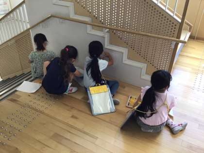 図工の時間です。ざらざらを写しとって何に使うのかな。
