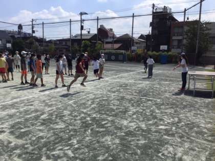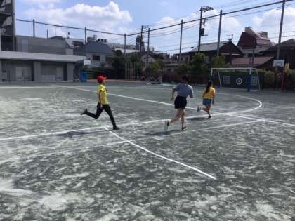 校庭では、リレーが始まりました。バトンなし、非接触型リレーになっています。