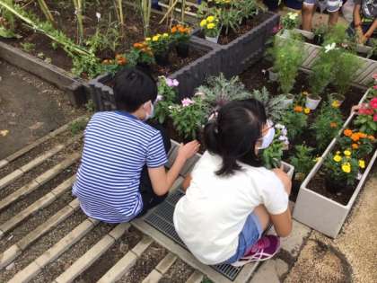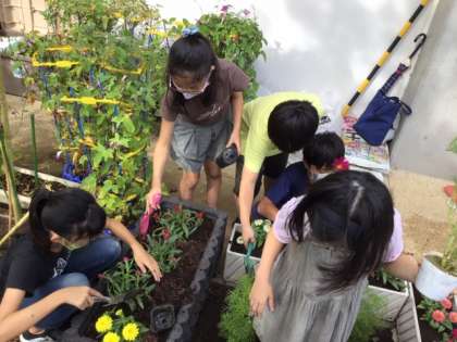 6時間目は、委員会活動でした。飼育栽培委員会では、マリーゴールドやコスモスなどを植えました。