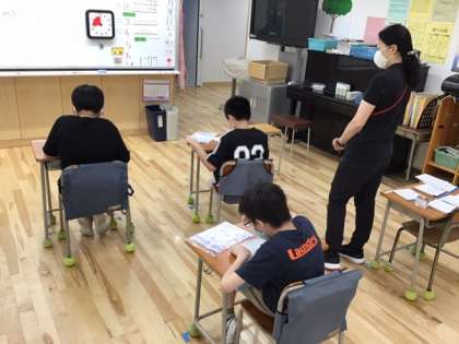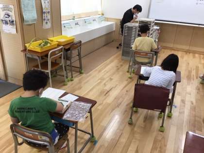ペグや刺し子に取り組んでいます。1年生のみなさんは、運動会練習です。