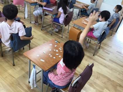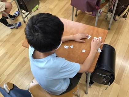 国語の時間です。漢字カードを使って、仲間分けに挑戦しています。
