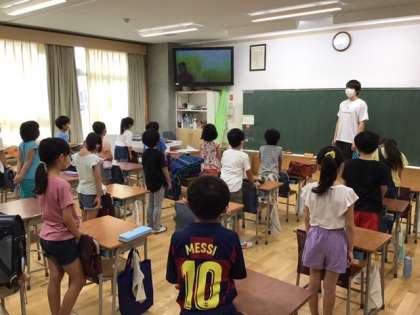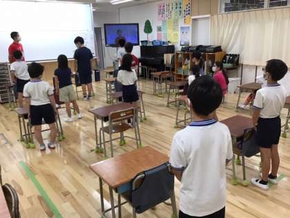 今日も放送による全校朝会でした。運動会向けて、みんなで気持ちを合わせて取り組んで行こうという話をしました。