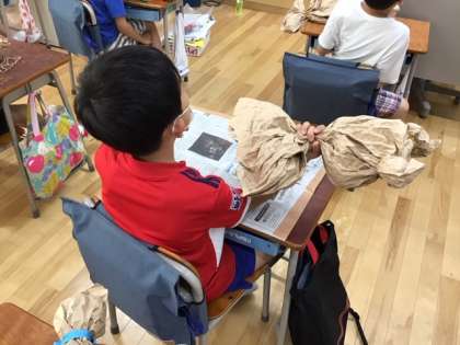 図工の時間です。「わたしのお友達」が出来上がりました。これからお友達の紹介文を書きます。