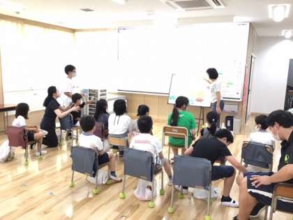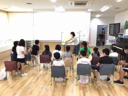 音楽の時間です。いろいろな楽器を使って「むしのこえ」に挑戦しています。