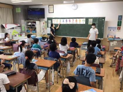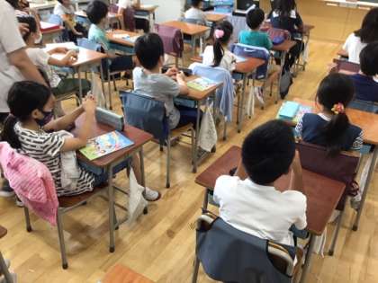 外国語の時間です。サンディ先生と楽しく英語を学んでいます。