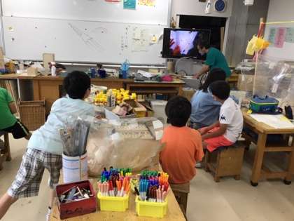 図工の時間です。作品には、それぞれの個性がよく出ていますね。