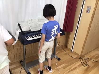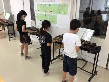 音楽の時間です。合奏「茶色の小びん」に挑戦しています。
