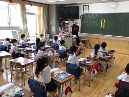 算数の時間です。10より大きな数の復習をしています。いろいろな意見が出ています。