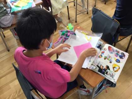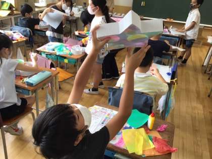 図工の時間です。「光のサンドイッチ」が完成に近づいてきました。