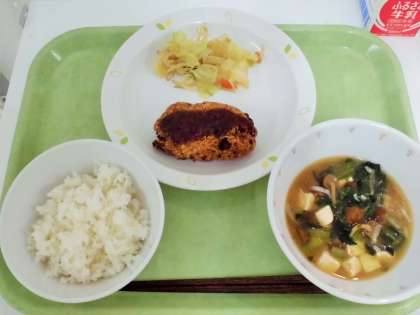 献立 ご飯、ポテトコロッケ、キャベツのお浸し、なめこのみそ汁、牛乳