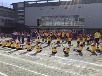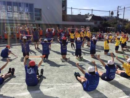 4色のオリジナルTシャツが、秋晴れに映えます。