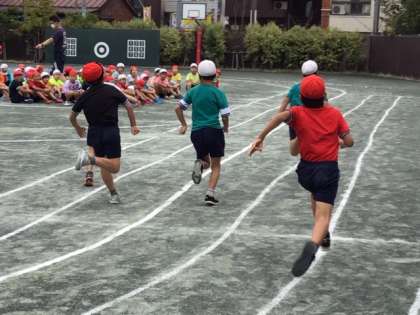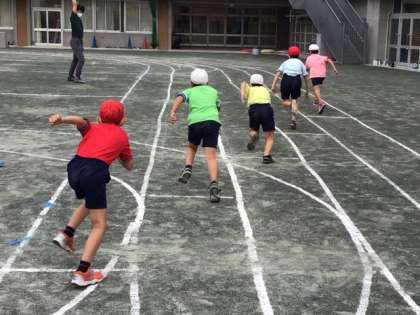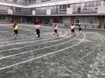 短距離走の練習をしています。カーブの走り方が上手くなりました。