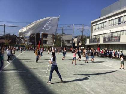 今年の応援合戦は、応援団以外は声を出しません。手拍子や鳴り物で力いっぱい応援します。