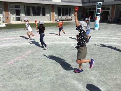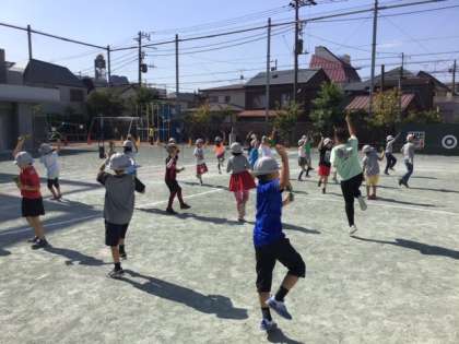 「鳴子でラ、ラ、ラ」リズムに乗って、跳ねるように、とても上手になりました。