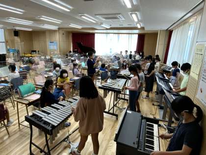 音楽で「茶色のこびん」の合奏です。お互いに聴き合いました。ほとんどの子どもが暗譜していました。