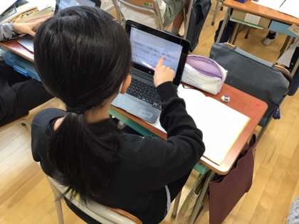 国語の時間です。時代や世代による言葉の違いについて調べています。