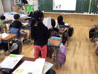 国語の時間です。「お手紙」を読み進めています。子どもたちが大好きなお話です。