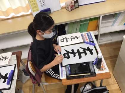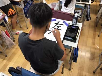国語の時間です。今日の題字は「左右」。バランスをとるのが難しいです。