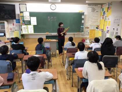 今日は、高学年の読み聞かせがありました。「よみきかせの会」のみなさんが、学年に合った本を選んでくださり、子どもたちは本の世界に入り込んでいました。