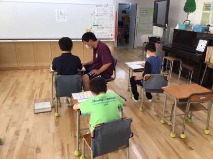 高学年は漢字学習、低学年はひらがなの学習に取り組んでいます。