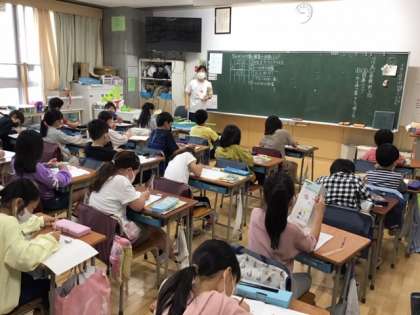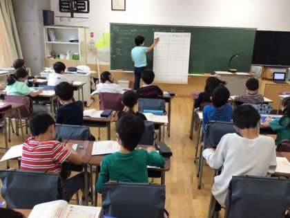 算数の時間です。「かけ算の筆算」の学習をしています。