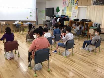 音楽の時間です。「クシコスポスト」いろいろな楽器に挑戦しています。