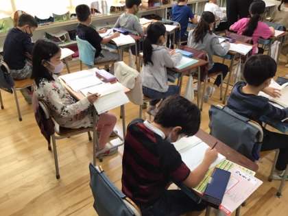 国語の時間です。「ちいちゃんのかげおくり」を読み進めています。