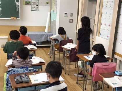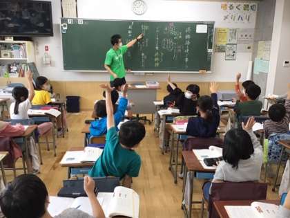 国語の時間です。修飾語について学習しています。たくさんの意見が出ています。
