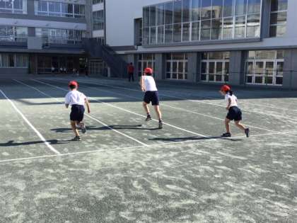 体育の時間です。クルミンピックの練習にも力が入ってきました。