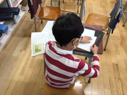 国語の時間です。「お手紙」の音読劇に向けて練習をがんばっています。