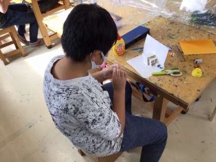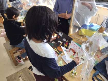 図工の時間です。飛び出すところを工夫して「ハッピーカード」を作っています。