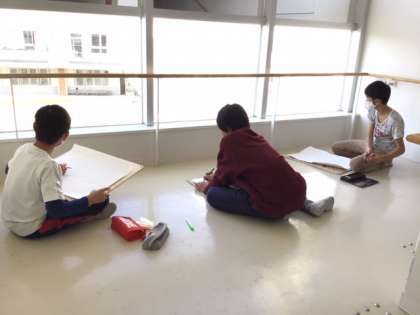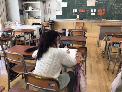 図工の時間です。「私のお気に入りの場所」小学校生活での思い出の場所をスケッチしています。