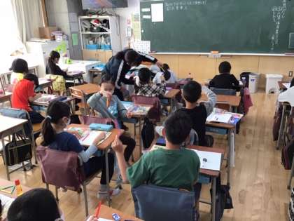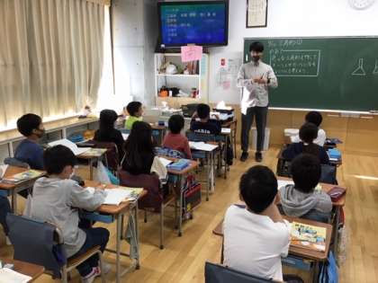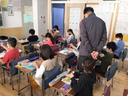 算数の時間です。ジョイントバーを使って三角形を作り、仲間分けをしています。