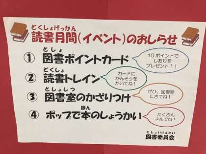 読書の時間です。11月は「読書月間」。いろいろなイベントがありますので、たくさん本を読みましょう。
