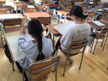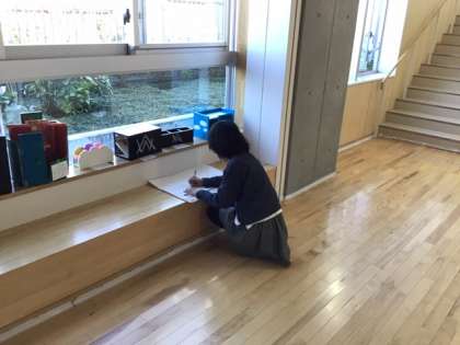 図工の時間です。「見つけた! お気に入りの場所」小学校生活の思い出がたくさんつまっていますね。