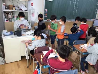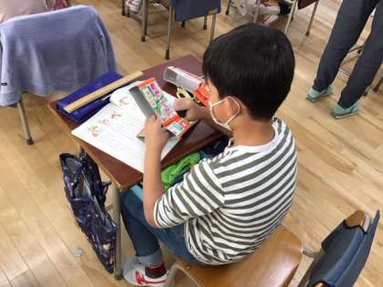 国語の時間です。「馬のおもちゃの作り方」教科書をしっかり読んで、自力で馬のおもちゃを作ります。
