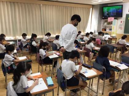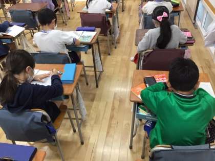 国語の時間です。「すがたをかえる大豆」はじめの部分を読んで、文章全体の中心を確かめます。