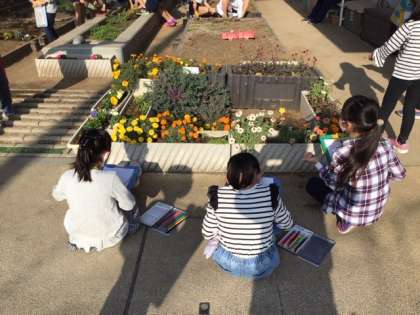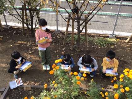 国語の時間です。「しらせたいな みせたいな」観察をしたあと、伝えたいことを文や絵にしていきます。