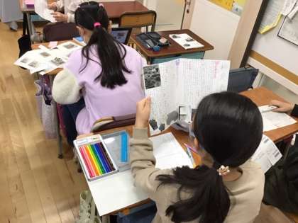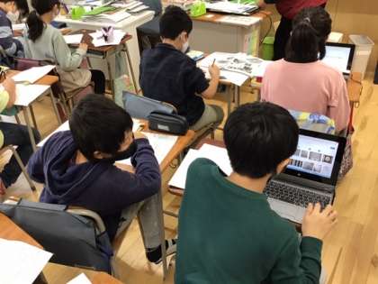 国語の時間です。「日本の文化を紹介しよう」班ごとにテーマを決めて調べています。