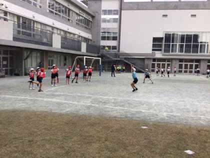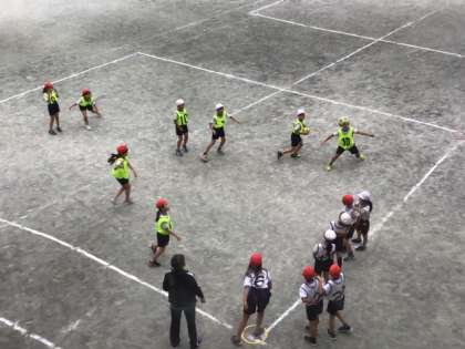 体育の時間です。「バックホームゲーム」の試合の様子です。