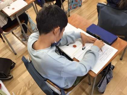 国語の時間です。今日の学習では、文章全体のまとめをします。