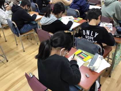 理科の時間です。「大地のつくりと変化」のまとめをしています。