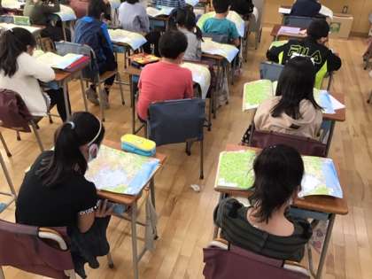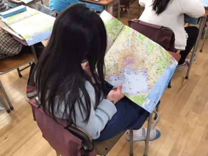 社会科の時間です。地図の見方、使い方がとても上手になりました。