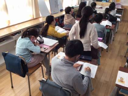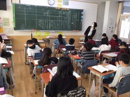 国語の時間です。「プラタナスの木」5つの場面ごとに出来事を押さえていきます。