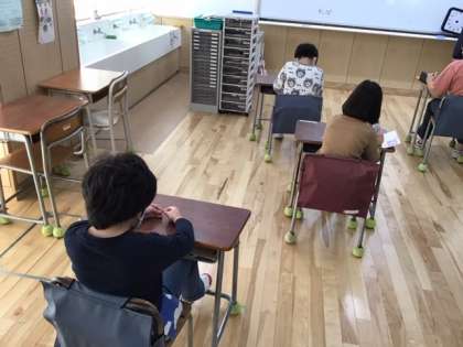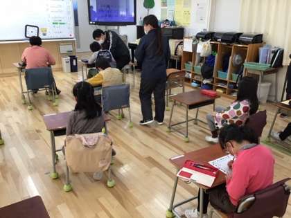 学級活動の時間です。5年後の自分に伝えたいことを手紙に書いています。