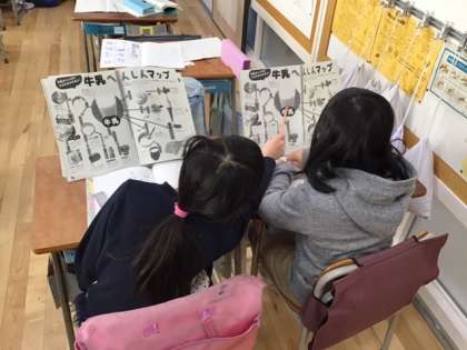 国語の時間です。「食べ物の秘密を教えます」今日は、調べた内容を整理しています。